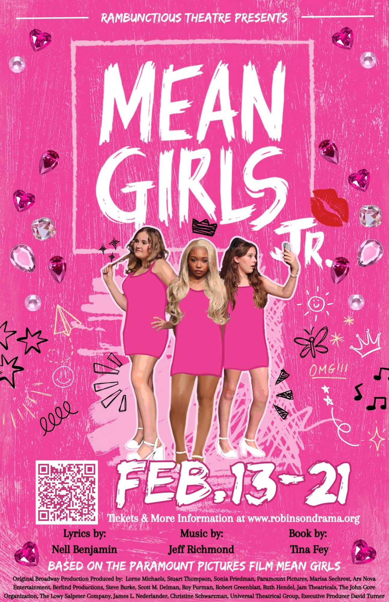 The Plastics have deemed Broadway Junior worthy of their presence in Mean Girls JR! This "fetch" musical from book writer Tina Fey (30 Rock), lyricist Nell Benjamin (Legally Blonde) and composer Jeff Richmond (Unbreakable Kimmy Schmidt) is packed with keen wit, an undeniably catchy score, and a sincere message for everyone. Cady Heron may have grown up on an African savanna, but nothing prepared her for the wild and vicious ways of her strange new home: suburban Illinois. How will this naïve newbie rise to the top of the popularity pecking order? By taking on The Plastics, a trio of lionized frenemies led by the charming but ruthless Regina George. Cady and her friends devise a "Revenge Party" to end Regina’s reign with Cady going undercover as an aspiring Plastic. When the lines between the real Cady and her Plastic self get blurred, she must find her way back to herself and her true friends.